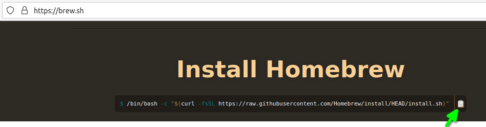 Visit the Homebrew website, https://brew.sh/, and copy the installation command by clicking the copy icon: